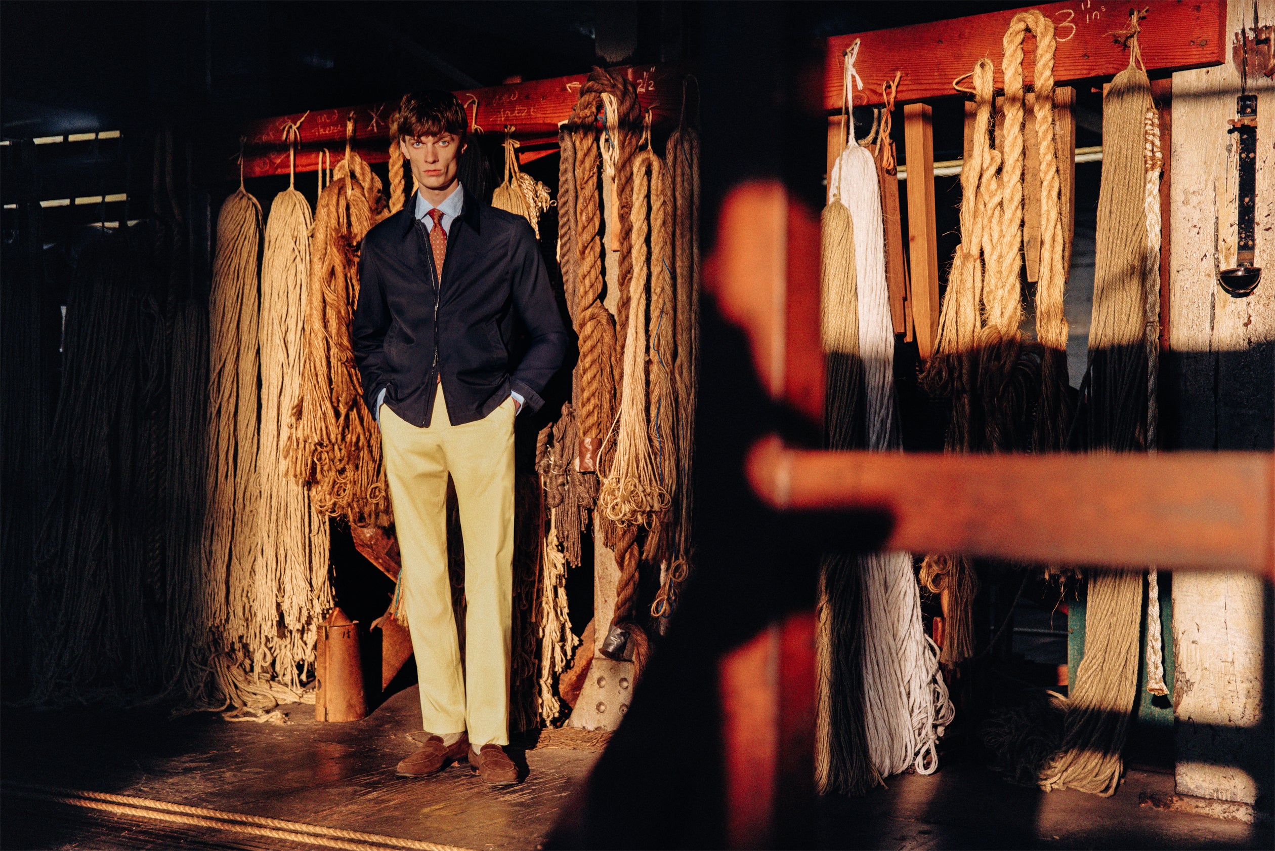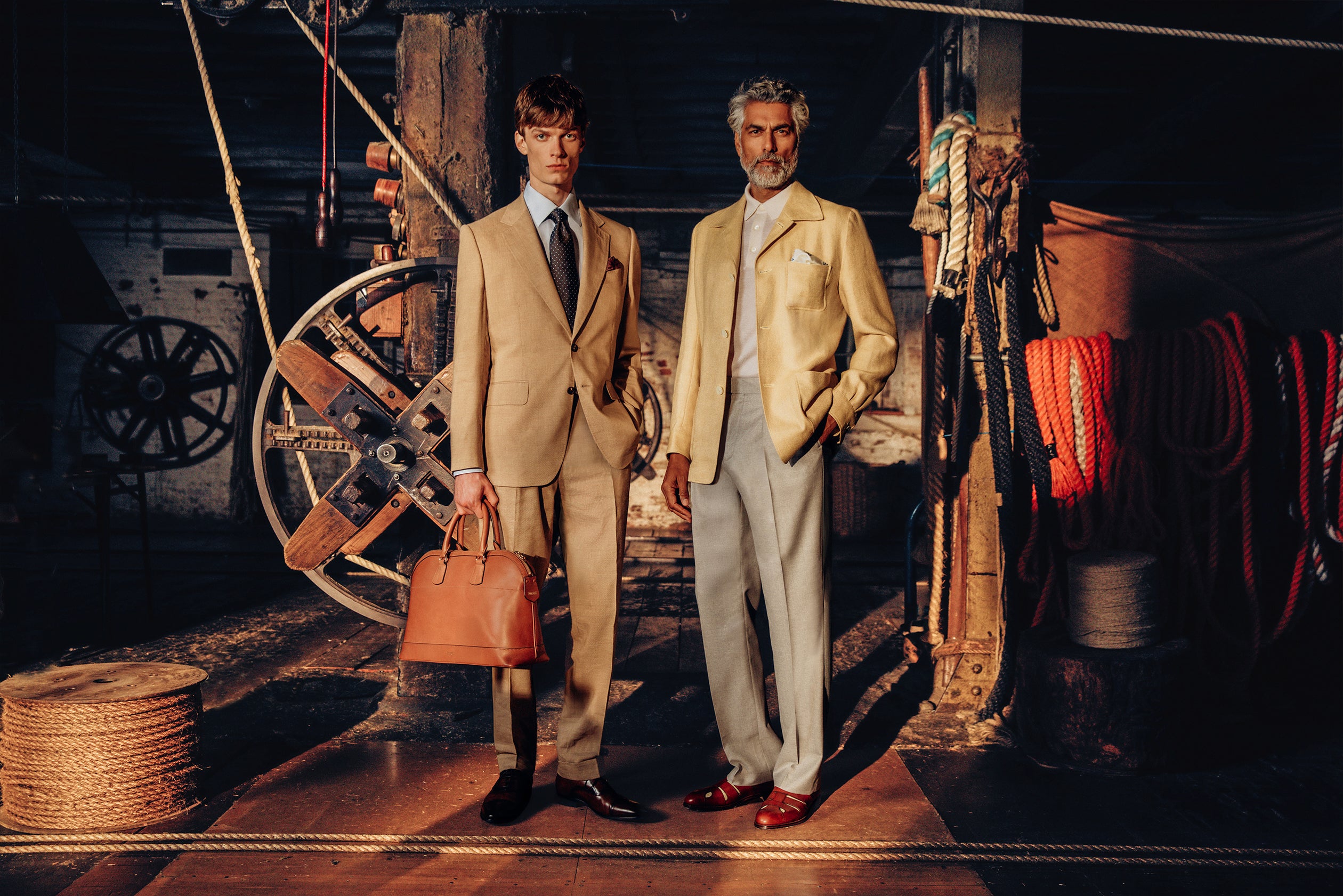 Harrison Virgin Wool Silk Linen Elastane Seersucker Morse Code Suit Trouser Navy