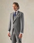 The Torlesse Morning Coat in Grey Sharkskin by Gieves and Hawkes stands as the epitome of dignified British tailoring. Featuring a Single breasted, one button, Peak lapel and single vent, this fully lined coat offers both comfort and a distinguished allure. Hand made buttonhole and working functional cuffs which accentuate its meticulous craftsmanship, making it an impeccable choice for any formal morning occasion.