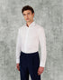 Additional touches of luxury are evident in the exquisite details, such as mother of pearl buttons which add a refined finish to the plain, formal design. This shirt is crafted from fabric sourced from one of the finest Italian mills. Whether for the boardroom or a formal occasion, and a statement piece that speaks volumes of your impeccable taste and discerning eye for quality.