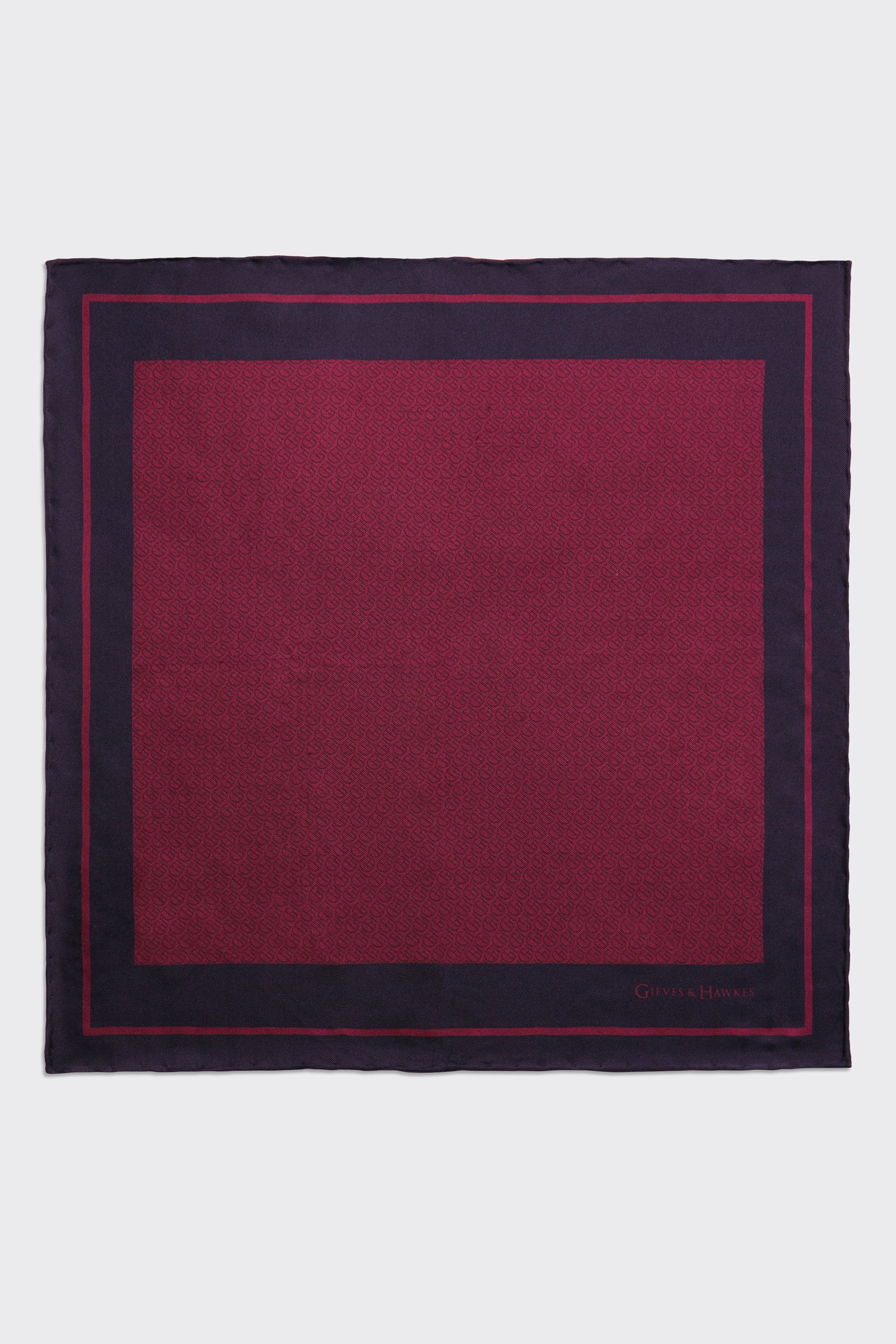 Barne Silk Pocket Square G&H Monogram Burgundy