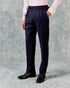 The Churchill Suit Trouser in Navy Morse Code Flannel is tailored from a luxurious Italian blend of wool and cashmere, offering a soft hand and refined structure. Designed with a single English pleat, side adjustors, and dark horn buttons, it’s a sophisticated foundation for modern suiting.