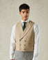 The Nicholson Double Breasted Waistcoat in Tan Plain embodies the timeless elegance synonymous with Gieves and Hawkes. Designed with a DB6 Peak Lapel and accentuated by sophisticated mother of pearl buttons, this waistcoat is an exquisite addition to any discerning gentleman's wardrobe. Its two slanted welt pockets provide a touch of practicality while maintaining an understated luxury.