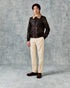 The Dick Leather Aviator Jacket in Brown-channels vintage aviation style with modern refinement, featuring a removable shearling collar and ribbed cuffs and hem. Finished with a distinctive map-print lining, it’s a bold outerwear statement with timeless character.