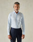 Additional touches of luxury are evident in the exquisite details, such as mother of pearl buttons which add a refined finish to the plain, formal design. This shirt is crafted from fabric sourced from one of the finest Italian mills. Whether for the boardroom or a formal occasion, the Mawbey Cut Away Double Cuff Shirt in Blue Twill is a statement piece that speaks volumes of your impeccable taste and discerning eye for quality.